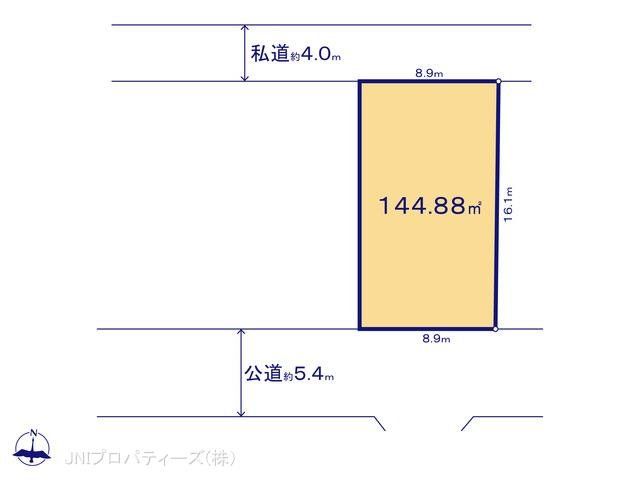 | 現況/引渡し | 更地/相談 | 接道状況 | 接道: 南 公道 道路幅: 5.4m 接道: 北 私道 道路幅: 4m |